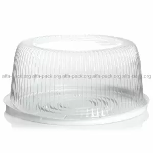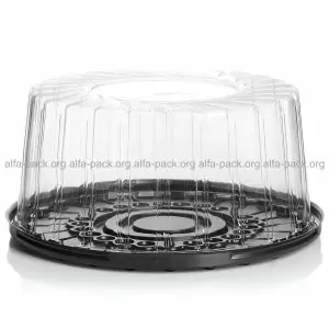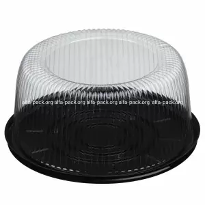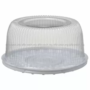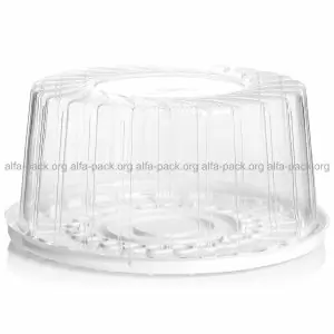 - Пластиковые коробки для тортов – упаковка кондитерская различной формы и размера: круглые и квадратные, для тортов весом 0,5, 1, 1,5, 2 и более кг. Есть даже коробки для половины торта. Днище разной структуры, в зависимости от веса, который оно должно выдержать, и типа торта. К примеру, для крошащихся белковых коржей подходят днища рельефные, а для бисквитных – гладкие;
