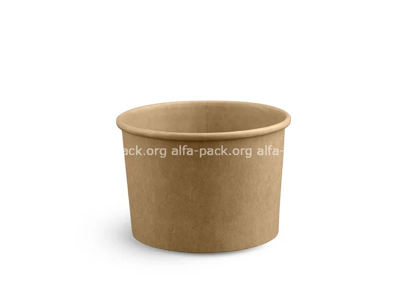 Паперова супниця з крафт-картону з пластиковою кришкою в комплекті. Призначена для подачі супів, бульйонів та других страв. Містка, практична, не протікає та не вбирає сторонні запахи. Легко утилізується.