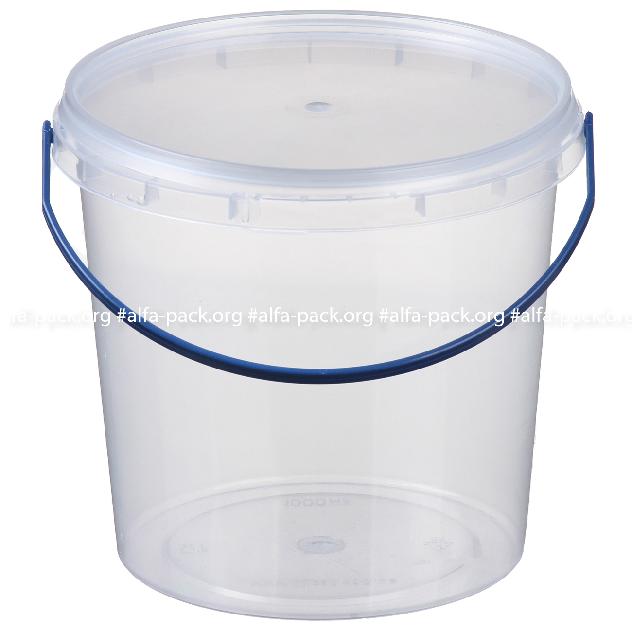 Є кришка, що щільно закривається, та пластикова ручка синього кольору.