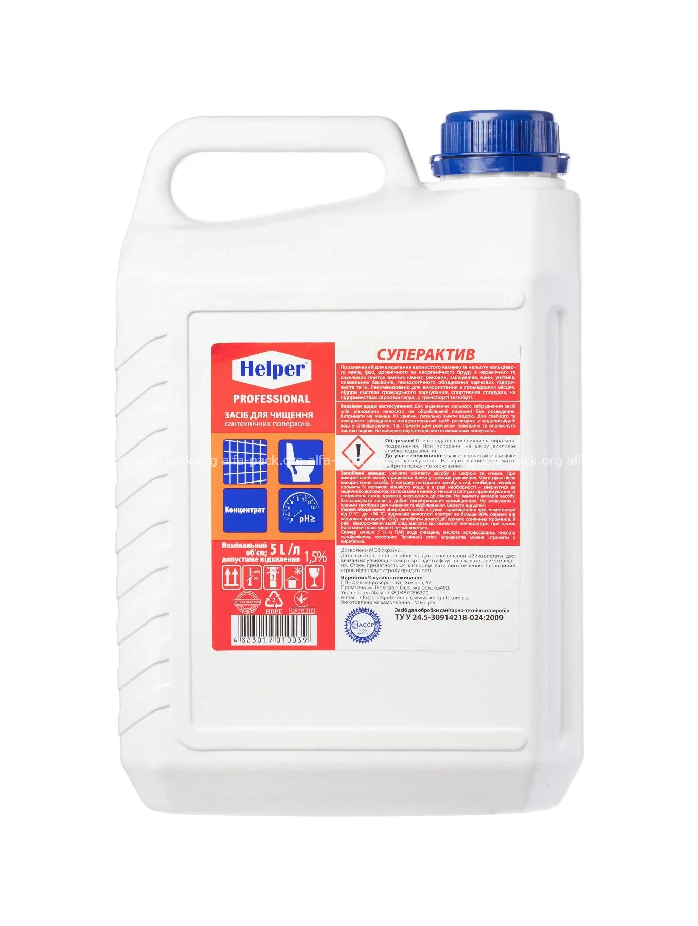 Helper Professional — концентрированное кислотное средство для сантехники, 5 л