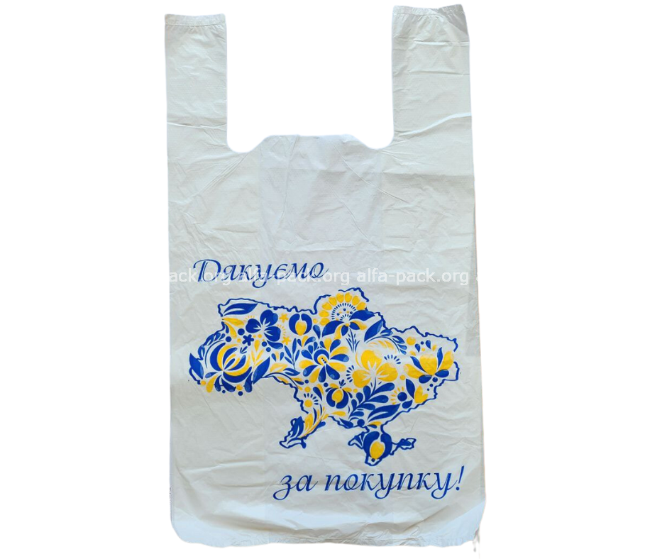 Пакет-майка "Дякую за покупку" 28*47 (200шт.) (артикул: 030001148) купить в разделе «Полиэтиленовые пакеты-майка».