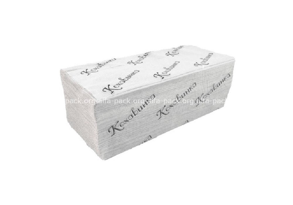 Однослойные бумажные полотенца Кохавинка серого цвета, листовые V-складывания. Изготовлены с добавлением вторичного сырья, обладают хорошей впитывающей способностью. Подходят для кухни и общественных мест.