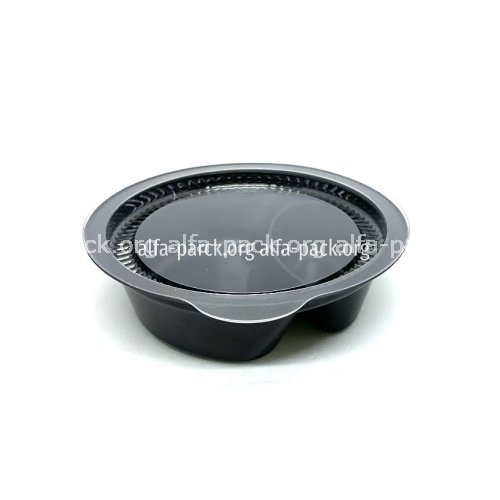 Соусник имеет съёмную крышку, которая плотно закрывается и предотвращает проливание содержимого. Плотный чёрный пластик сохраняет форму и придаёт упаковке современный, аккуратный внешний вид.
