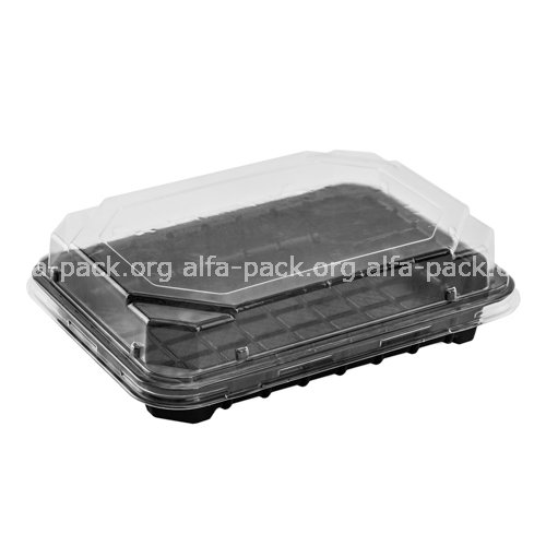 Завдяки прозорій кришці упаковка дозволяє красиво презентувати вміст, зберігаючи свіжість продукту. Оптимальний варіант для кафе, ресторанів та служб доставки.