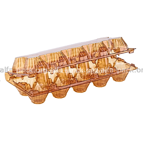 Надійна та зручна коричнева пластиковa упаковка для зберігання та транспортування яєць. Забезпечує захист від пошкоджень та забруднень.