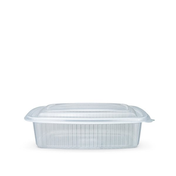 Контейнер чудово підходить для доставки страв, а також для продажу готової продукції на полицях супермаркетів. Не знімна кришка щільно закривається, що запобігає випадковому відкриванню.