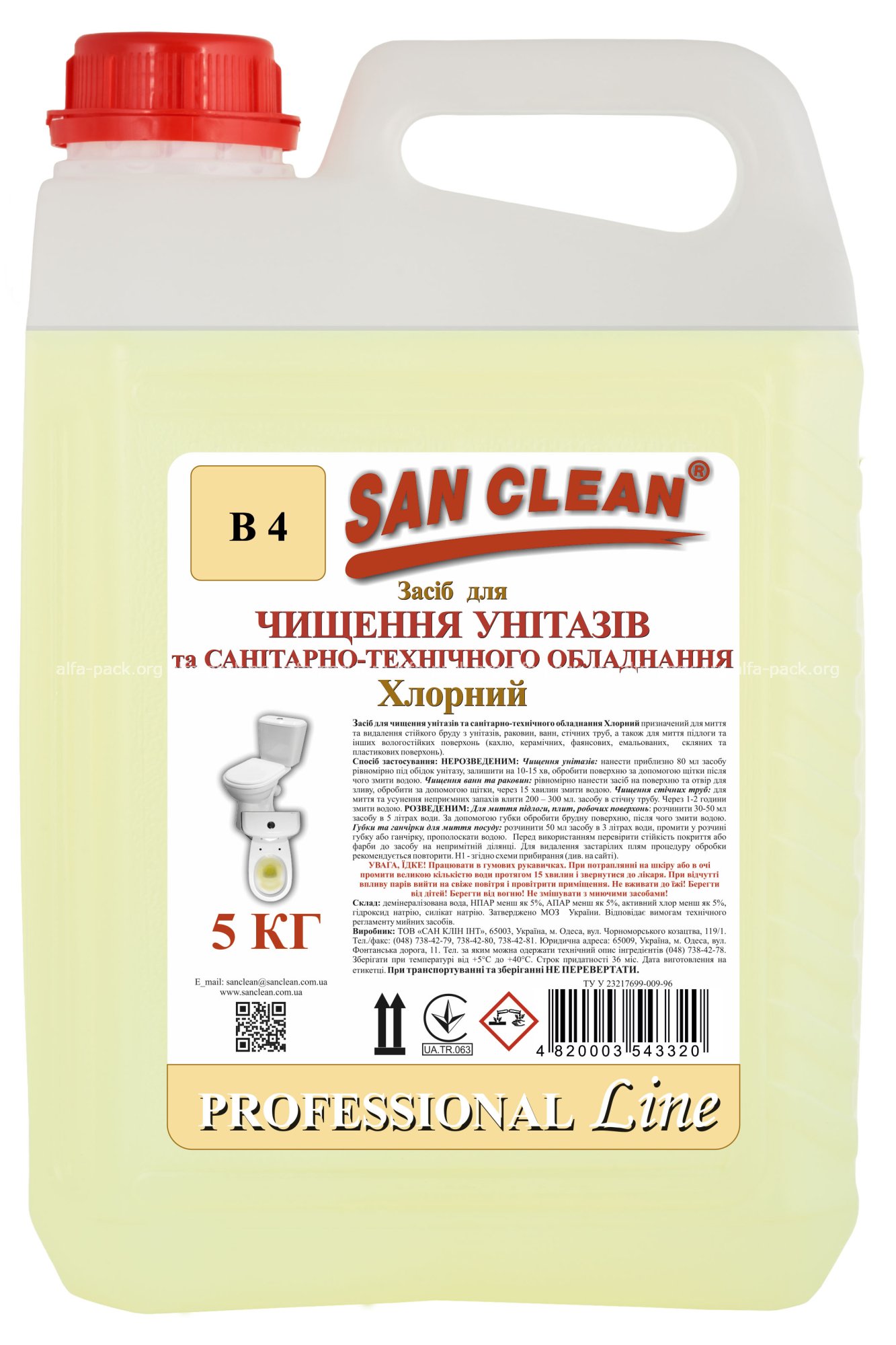 Засіб для чищення унітазів і санітарно-технічного устаткування, хлорний, 5 л