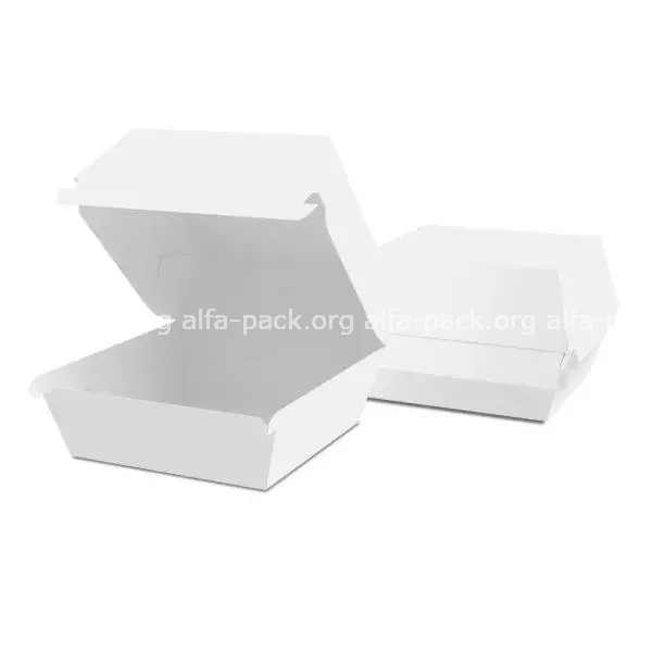 Картонная упаковка предназначена для фасовки и подачи бургеров. Обеспечивает сохранение формы изделия и защиту продукции от внешних воздействий. Подходит для предприятий фаст-фуда и служб доставки еды.