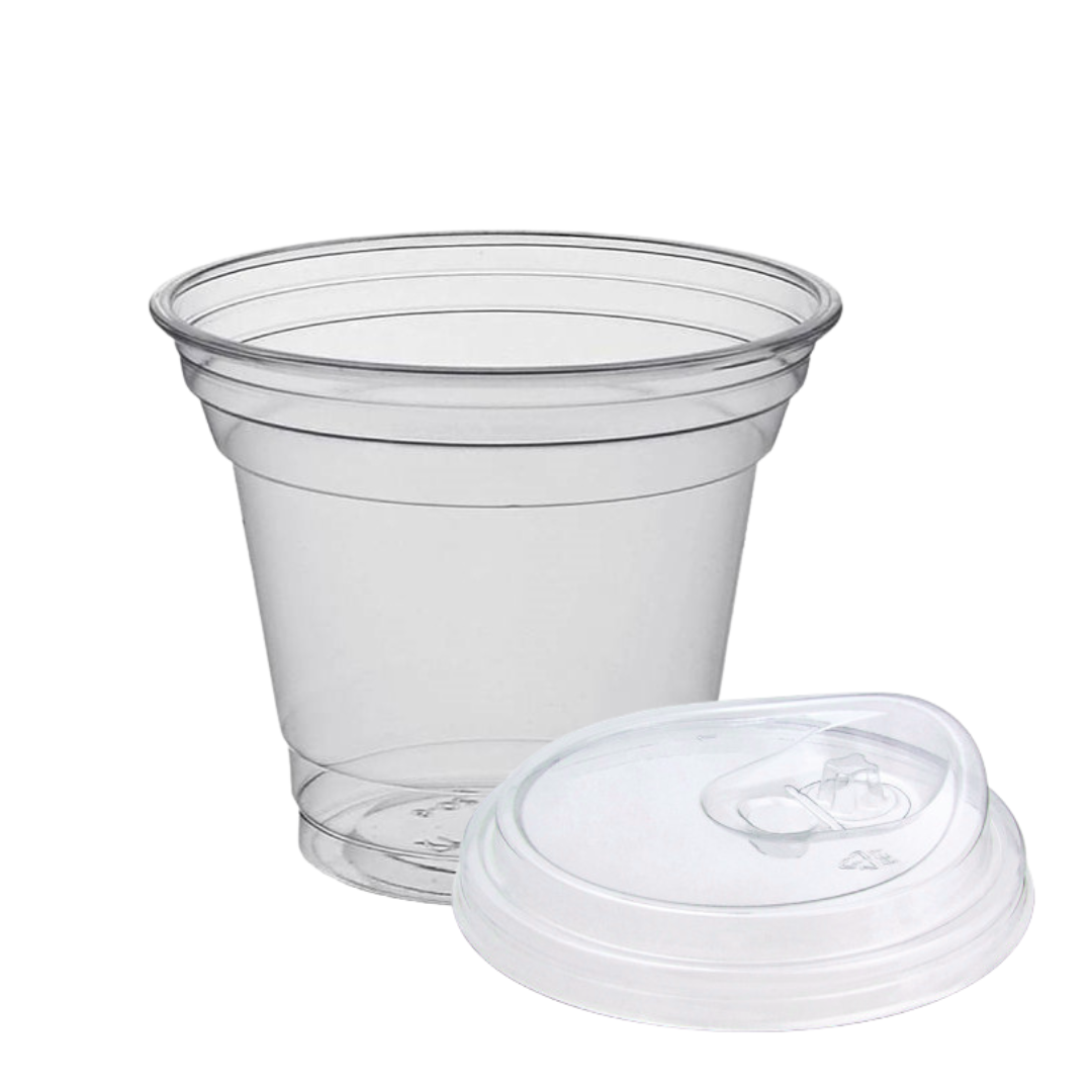 Прозрачный ПЭТ стакан в комплекте с купольной крышкой с клипсой. Подходит для коктейлей, смузи и других напитков и продуктов на вынос. Практичное решение для кафе, кофеен, фудкортов и доставки.