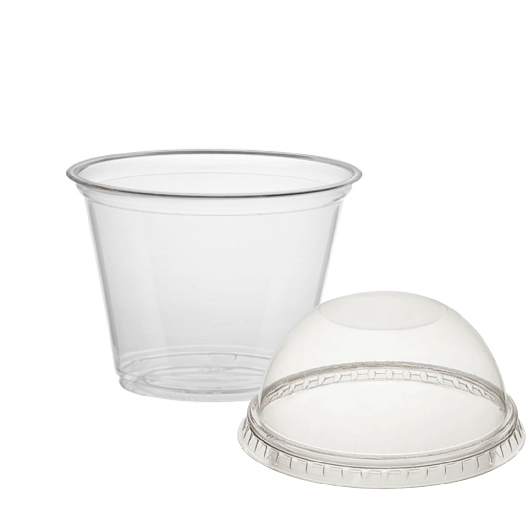 Прозрачный ПЭТ стакан в комплекте с купольной крышкой без отверстия. Подходит для коктейлей, смузи, десертов, фруктов и других напитков и продуктов на вынос. Практичное решение для кафе, кофеен, фудкортов и доставки.
