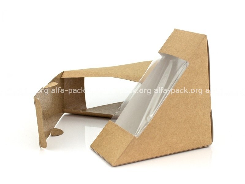 Упаковка для сэндвича изготовлена из крафт-картона, что делает ее экологически безопасной и удобной в утилизации. Этот материал прочен, не имеет неприятных запахов и помогает сохранить качество продукта.