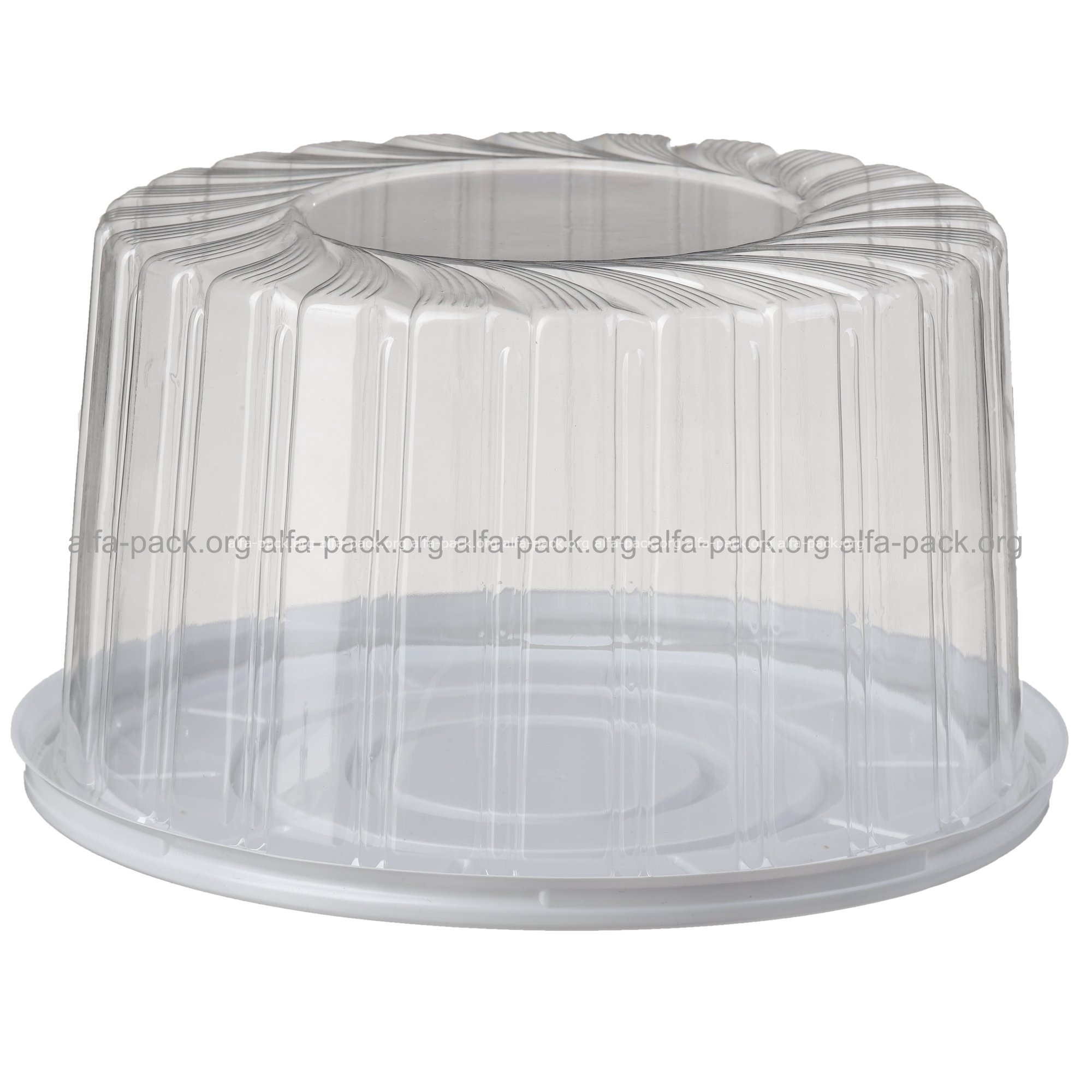 Удобная пластиковая тара для кондитерских изделий весом до 1,2 кг.Помогает привлечь внимание покупателей, и защитить торт от повреждений во время доставки.